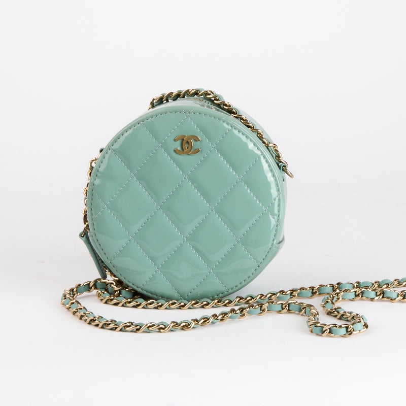 CHANEL - Sac Bandoulière Rond Vernis Turquoise - Hand Bag
