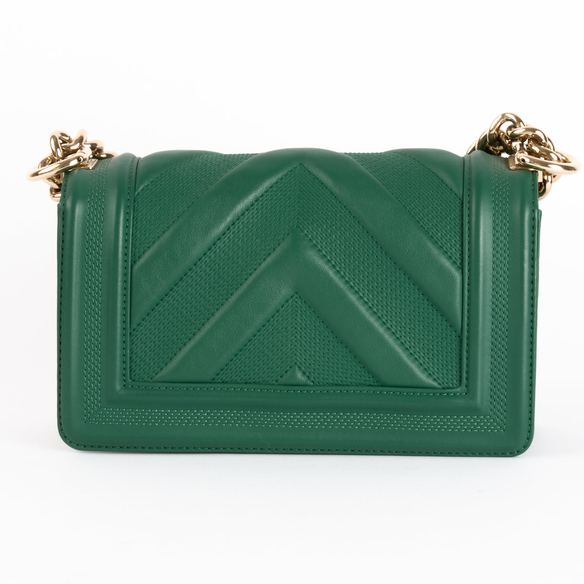 CHANEL - Sac bandoulière Mini Boy Chevron cuir Vert - Shoulder Bag