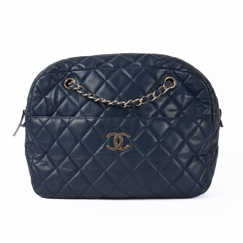 CHANEL - Sac à main Caméra Logo CC GM cuir caviar bleu - Hand bag