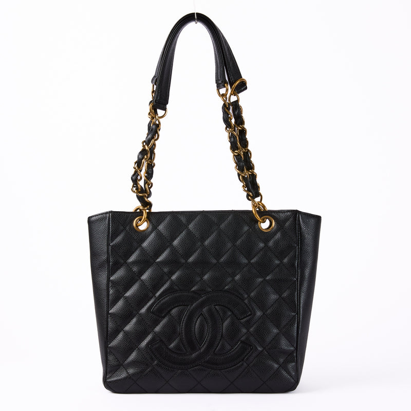 CHANEL - Sac à main Tote logo CC cuir caviar noir - Hand bag