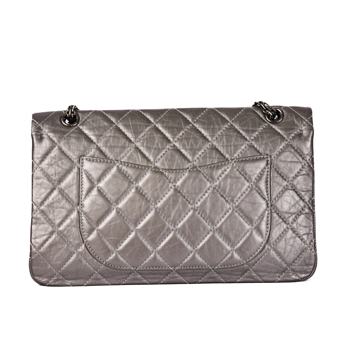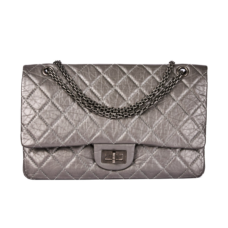 CHANEL - Maxi Jumbo 2.55 silver leather shoulder bag - Handbag