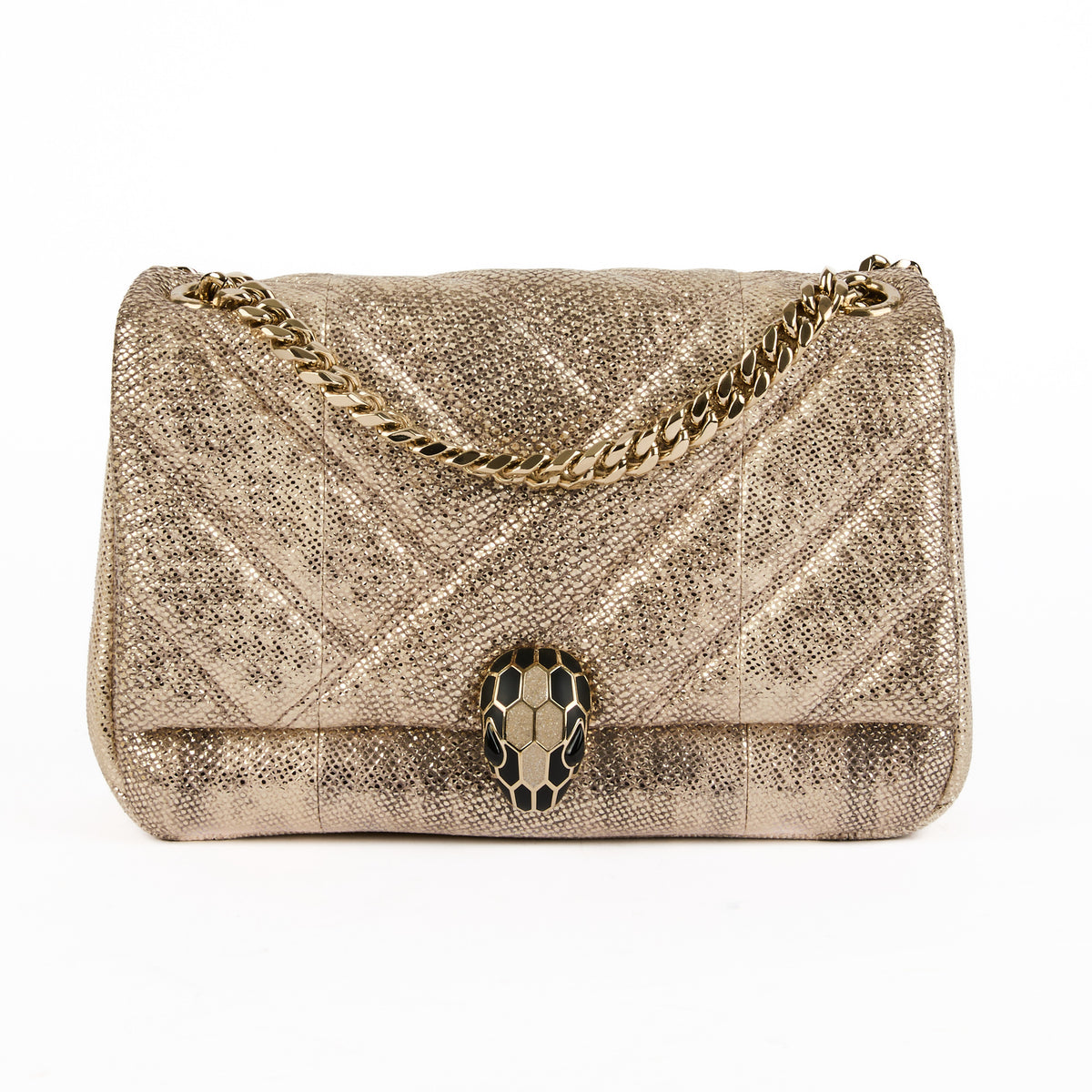 BVLGARI - Sac bandoulière Serpenti Cabochon cuir doré - Handbag